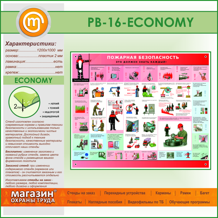 Стенд «Пожарная безопасность. Это должен знать каждый» (PB-16-ECONOMY)