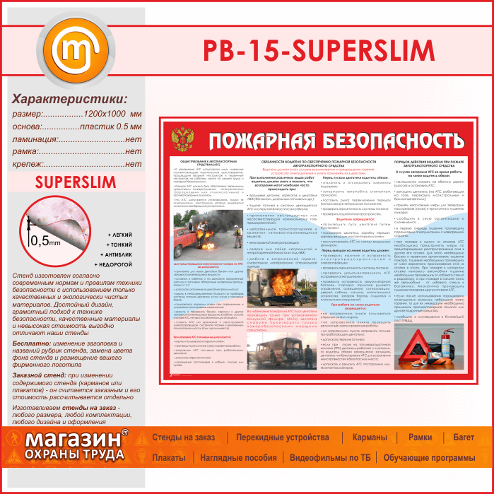 Стенд «Пожарная безопасность на автотранспорте» (PB-15-SUPERSLIM)