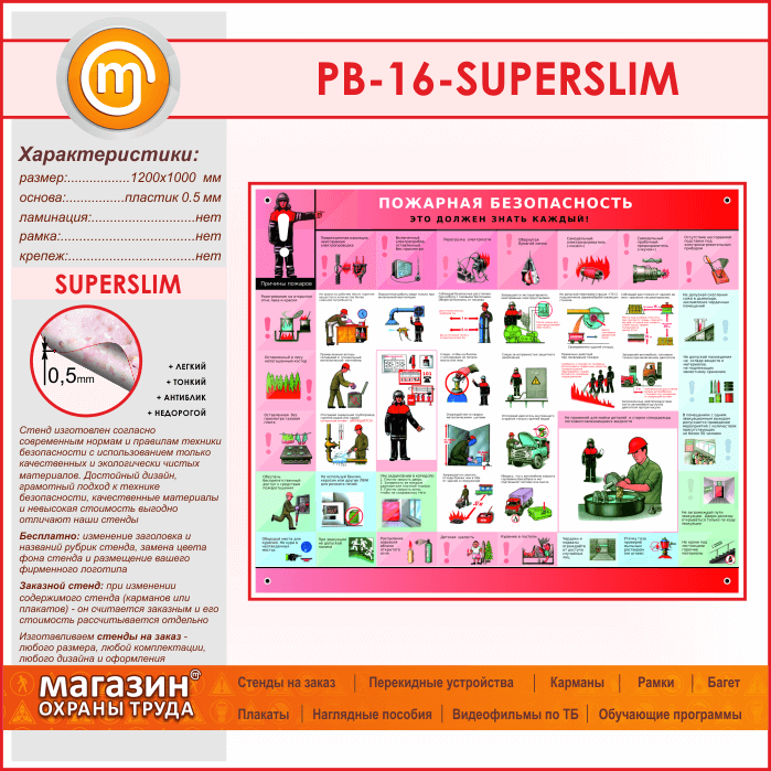 Стенд «Пожарная безопасность. Это должен знать каждый» (PB-16-SUPERSLIM)
