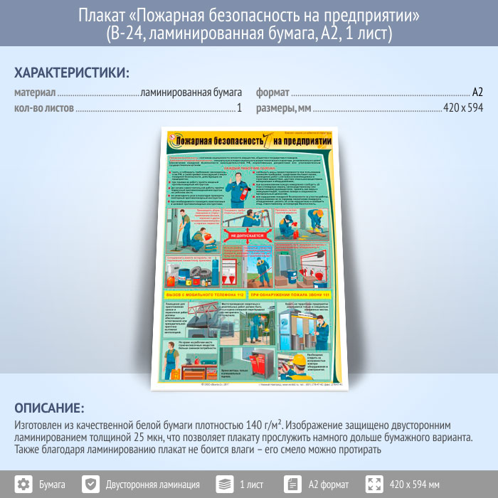 Плакат «Пожарная безопасность на предприятии» (В-24, ламинированная бумага, А2, 1 лист)