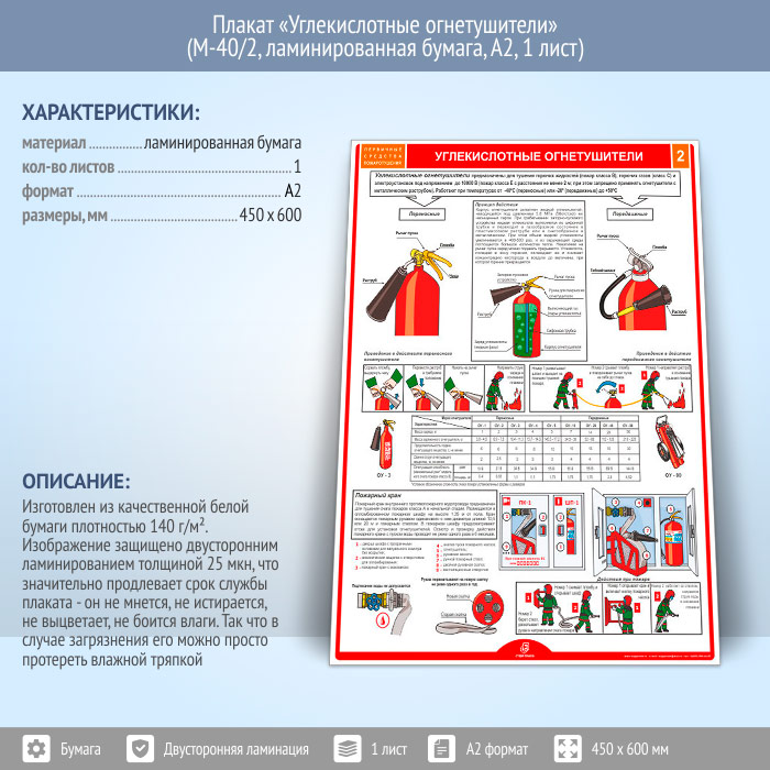 Плакат «Углекислотные огнетушители» (М-40/2, ламинированная бумага, А2, 1 лист)