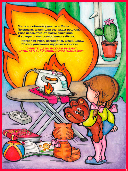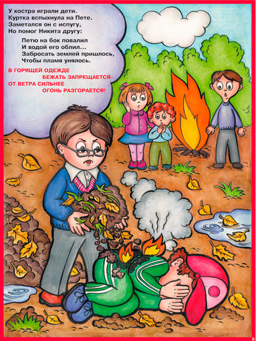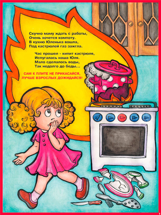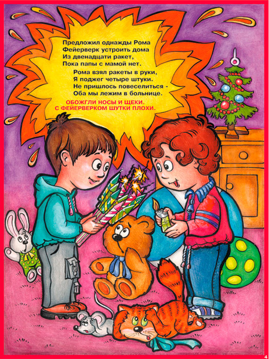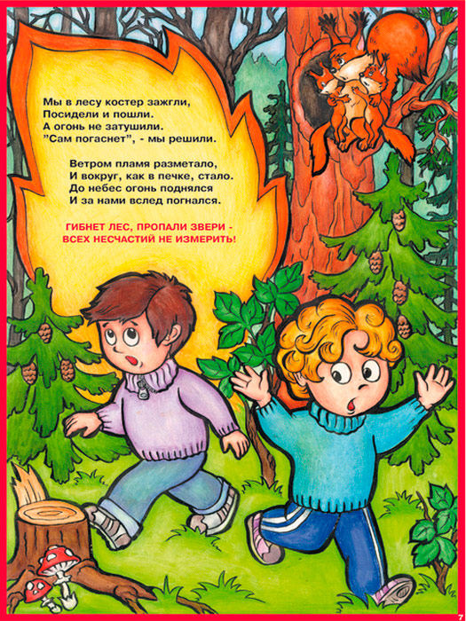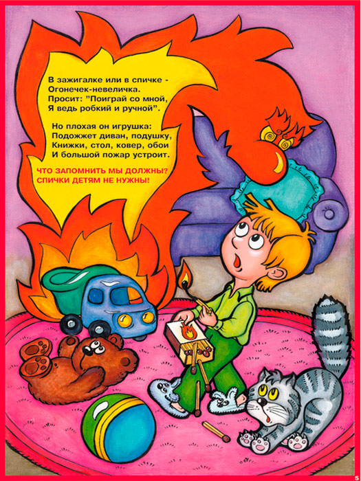 Комплект плакатов «Детям о правилах пожарной безопасности» из 10 листов поведает в стихах и красочных иллюстрациях о десяти основных правилах, которые дети должны знать о пожарной безопасности