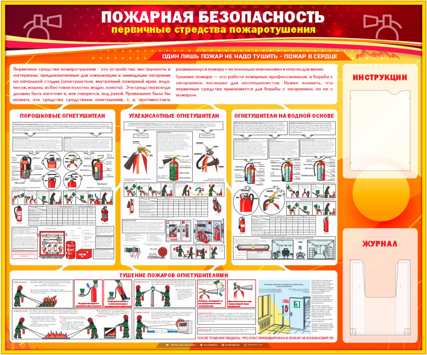 Стенды по пожарной безопасности помогают изучить правильные методы работы с первичными средствами пожаротушения и регламентируют действия в случае возникновения пожара