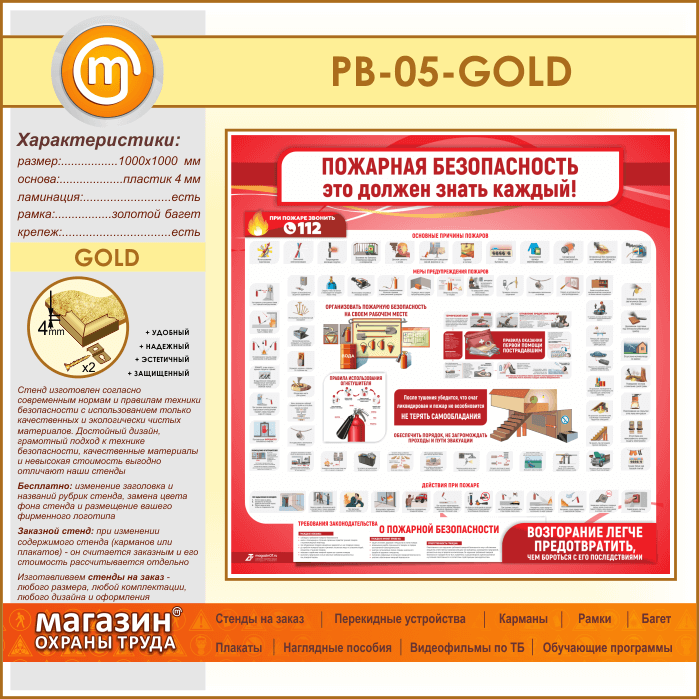 Стенд «Пожарная безопасность. Это должен знать каждый» (PB-05-GOLD)