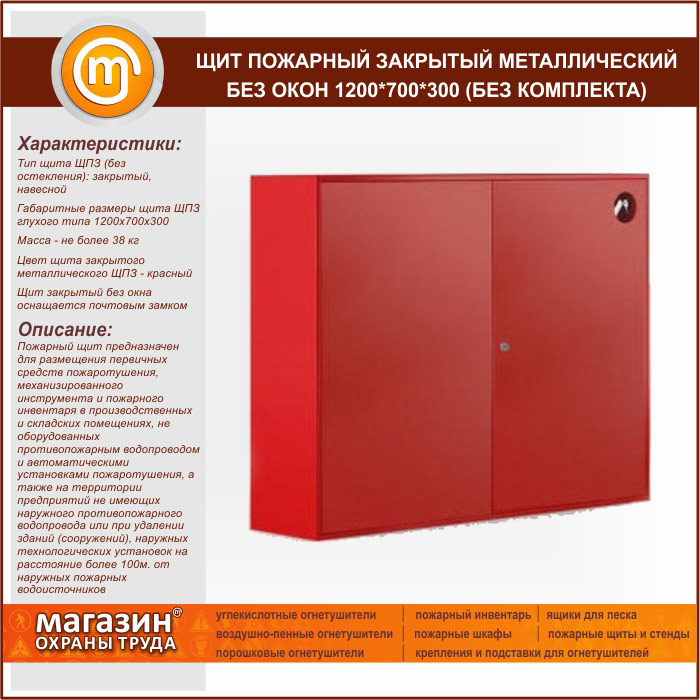 Щит пожарный закрытый металлический без окон 1200*700*300 (без комплекта)
