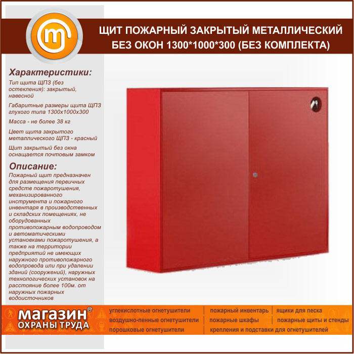 Щит пожарный закрытый металлический без окон 1300*1000*300 (без комплекта)