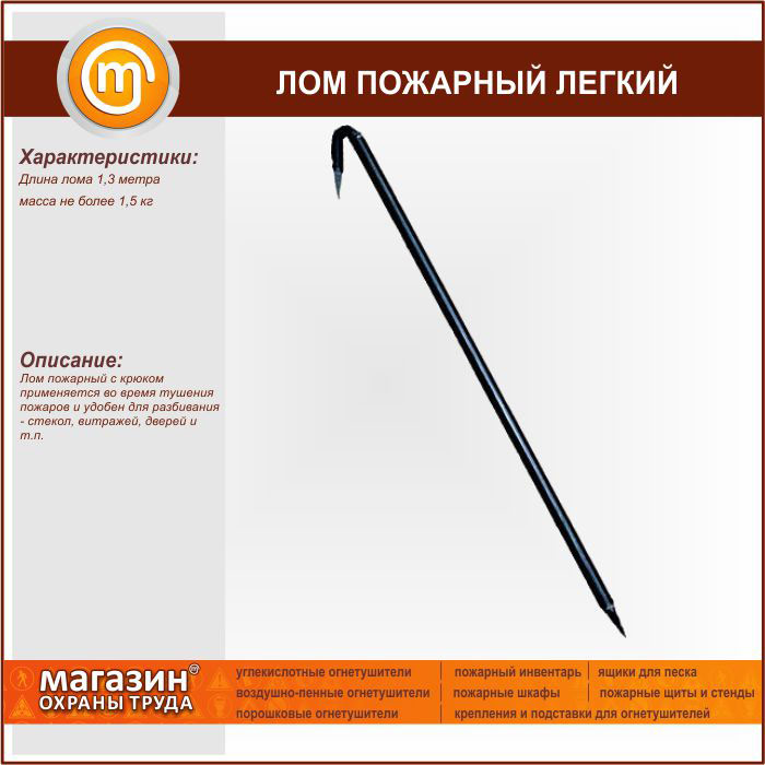 Лом пожарный с крюком применяется во время тушения пожаров и удобен для разбивания - стекол, витражей, дверей и т.п.