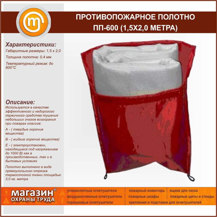Противопожарное полотно ПП-600 (1, 5х2, 0 метра)