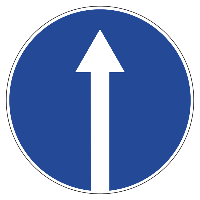 Знак обозначает, что движение разрешено только прямо. Также разрешён поворот направо во дворы. Дорожный знак 4.1.1 применяют также для запрещения разворотов в разрывах разделительной полосы на участках дорог между перекрестками. При этом знак устанавливают только на разделительной полосе. На дорогах с двумя и более полосами для движения в данном направлении дублирующие знаки устанавливают над левой полосой, на дорогах с разделительной полосой - на разделительной полосе, а на дорогах без разделительной полосы при числе полос для встречного движения не более двух допускается устанавливать дублирующий знак на левой стороне дороги