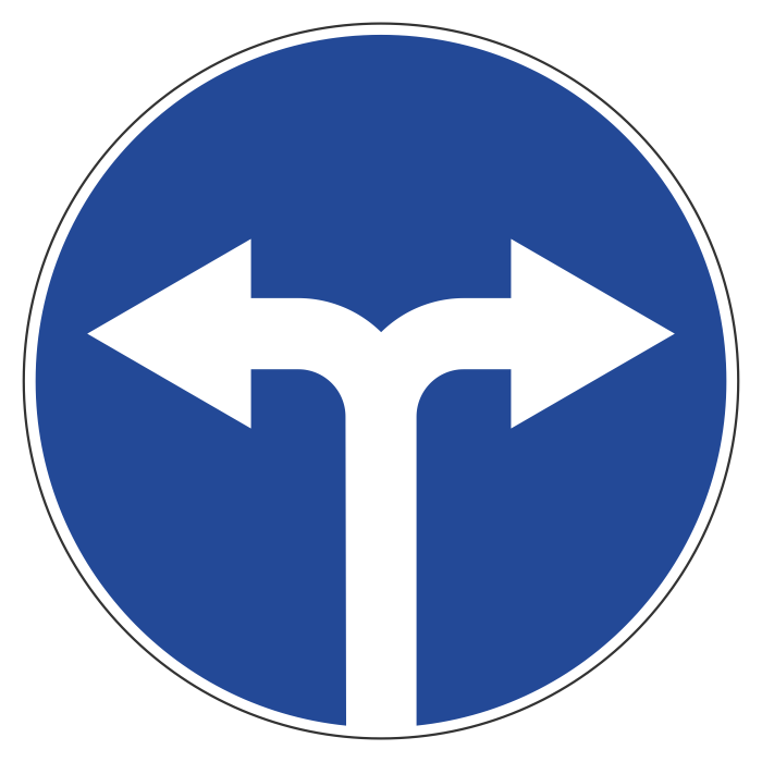 Дорожный знак 4.1.6 «Движение направо или налево» (металл 0,8 мм, II типоразмер: диаметр 700 мм, С/О пленка: тип А инженерная)