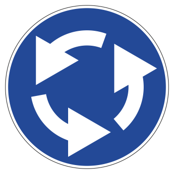 Знак разрешает движение в указанном стрелками направлении. Дорожный знак 4.3 устанавливают на каждом въезде на перекресток (площадь), на котором организовано круговое движение. Знак не применяют, если одновременно с круговым движением допускается перекрестное движение транспортных средств, за исключением рельсовых