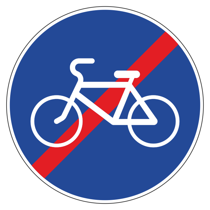 Дорожный знак 4.4.2 «Конец велосипедной дорожки или полосы для велосипедистов» (металл 0,8 мм, II типоразмер: диаметр 700 мм, С/О пленка: тип В алмазная)