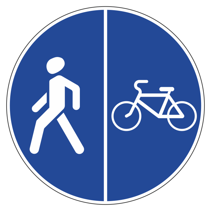Знак устанавливается для обозначения велопешеходной дорожки с разделением на велосипедную и пешеходную стороны дорожки, выделенные конструктивно и (или) обозначенные горизонтальной разметкой 1.2.1, 1.2.2, 1.23.2 и 1.23.3 или иным способом