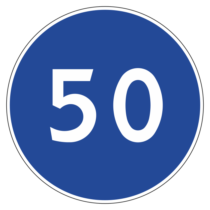 Знаком разрешается движение только с указанной или большей скоростью (км/ч). Дорожный знак 4.6 применяют для введения на дороге или отдельной полосе движения скоростного режима, при котором движение разрешается только с указанной или большей скоростью (например, на затяжных подъемах дорог с двумя или более полосами движения в данном направлении). Ограничение минимальной скорости движения по всей ширине проезжей части допустимо при наличии дублирующей дороги для транспортных средств, которые не могут двигаться с указанной на знаке скоростью