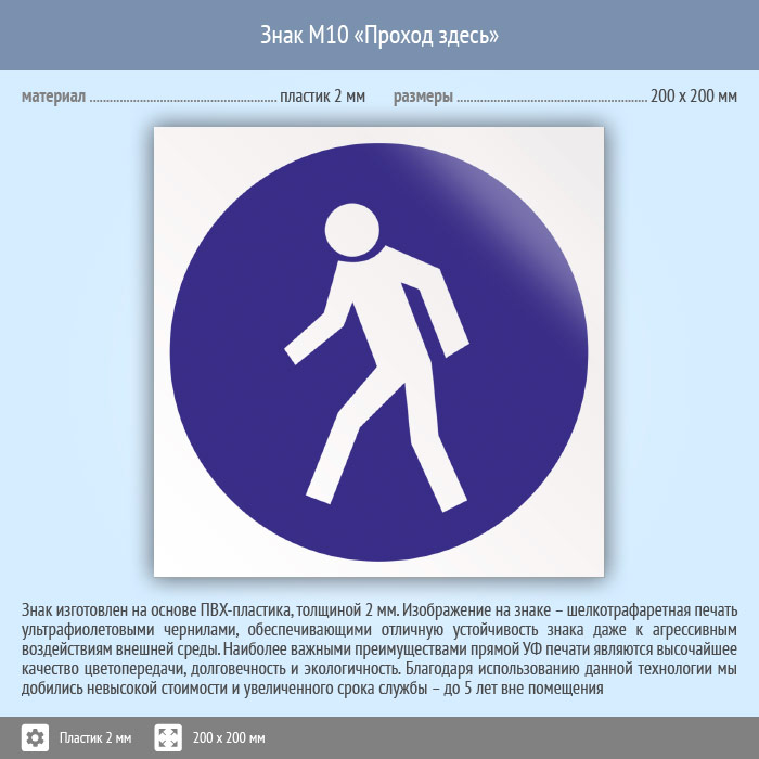 Знак M10 «Проход здесь» (пластик, 200х200 мм)