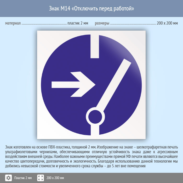 Знак M14 «Отключить перед работой» (пластик, 200х200 мм)
