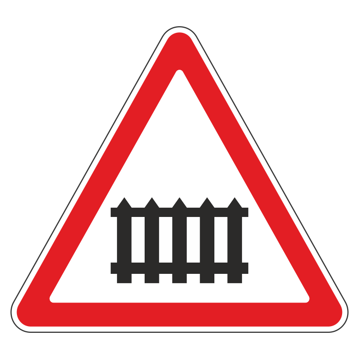 Дорожный знак 1.1 «Железнодорожный переезд со шлагбаумом» (металл 0,8 мм, III типоразмер: сторона 1200 мм, С/О пленка: тип А инженерная)