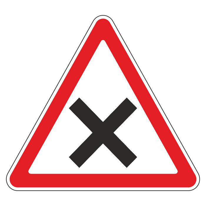 Дорожный знак 1.6 «Пересечение равнозначных дорог» (металл 0,8 мм, I типоразмер: сторона 700 мм, С/О пленка: тип В алмазная)