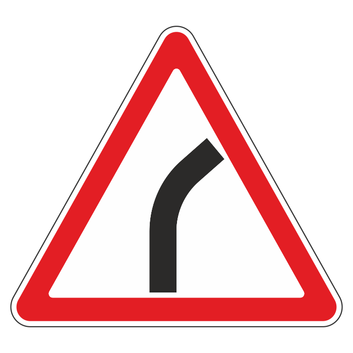 Дорожный знак 1.11.1 «Опасный поворот направо» (металл 0,8 мм, III типоразмер: сторона 1200 мм, С/О пленка: тип А коммерческая)
