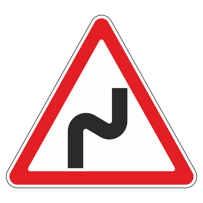Устанавливаются в населённом пункте за 50-100 м, вне населённых пунктов за 150-300 м до начала опасного участка. Предупреждают о приближении к участку дороги с двумя опасными поворотами, следующими друг за другом, первый из которых - направо
