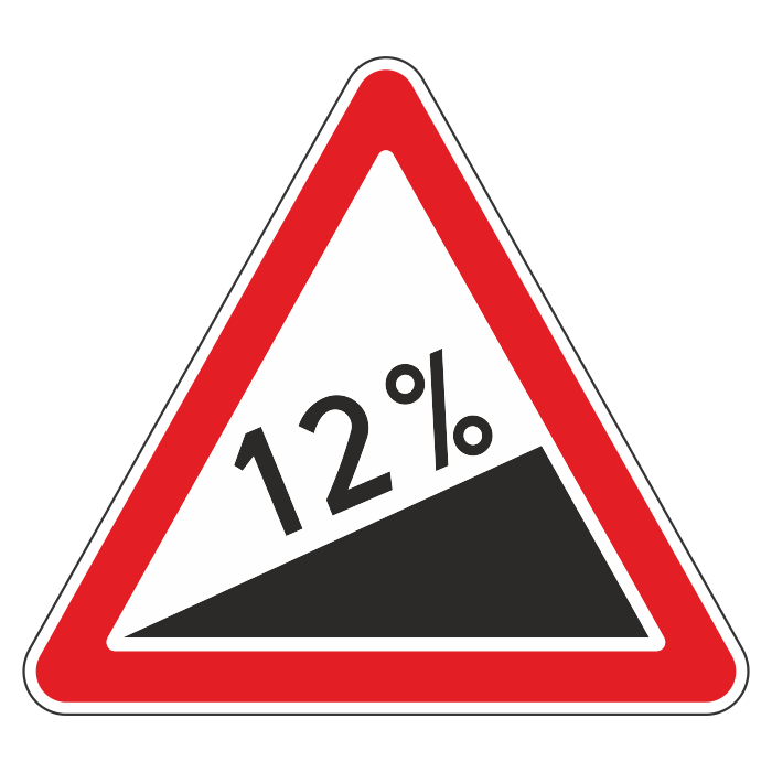Знак предупреждает водителя о том, что он подъезжает к участку дороги с крутым (опасным) подъемом. Цифрами указывается уклон в сотых долях. Если уклон обозначен знаками 1.13 или 1.14, то в случае затруднённого встречного разъезда уступить дорогу должен водитель, движущийся на спуск