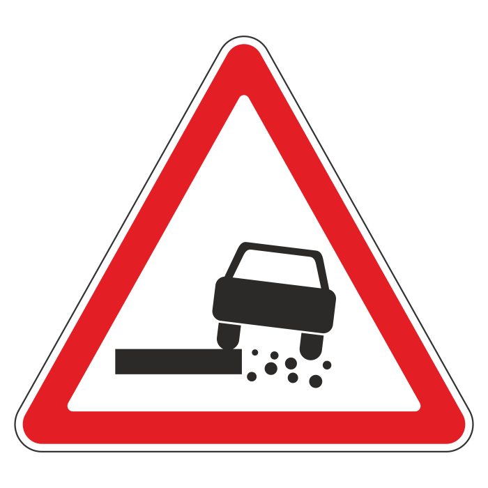 Дорожный знак 1.19 «Опасная обочина» (металл 0,8 мм, II типоразмер: сторона 900 мм, С/О пленка: тип А инженерная)