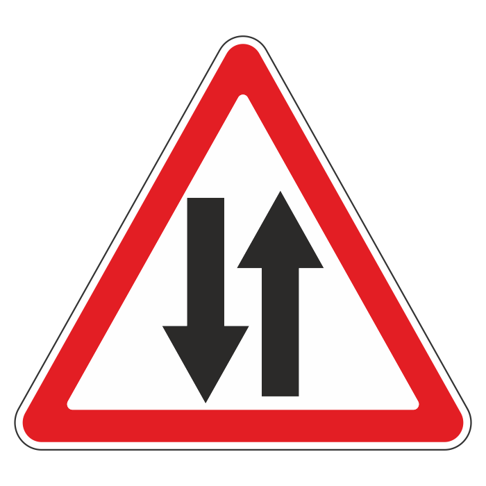Дорожный знак 1.21 «Двустороннее движение» (металл 0,8 мм, IV типоразмер: сторона 1500 мм, С/О пленка: тип А коммерческая)