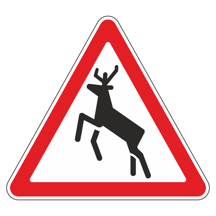 Данным знаком предупреждают о том, что на дорогу могут выбегать дикие животные. Дорожный знак 1.27 устанавливают перед участками дорог, проходящими по территории заповедников, охотничьих хозяйств, лесных массивов, и другими участками дорог, если на них возможно появление диких животных, и применяют с табличкой 8.2.1