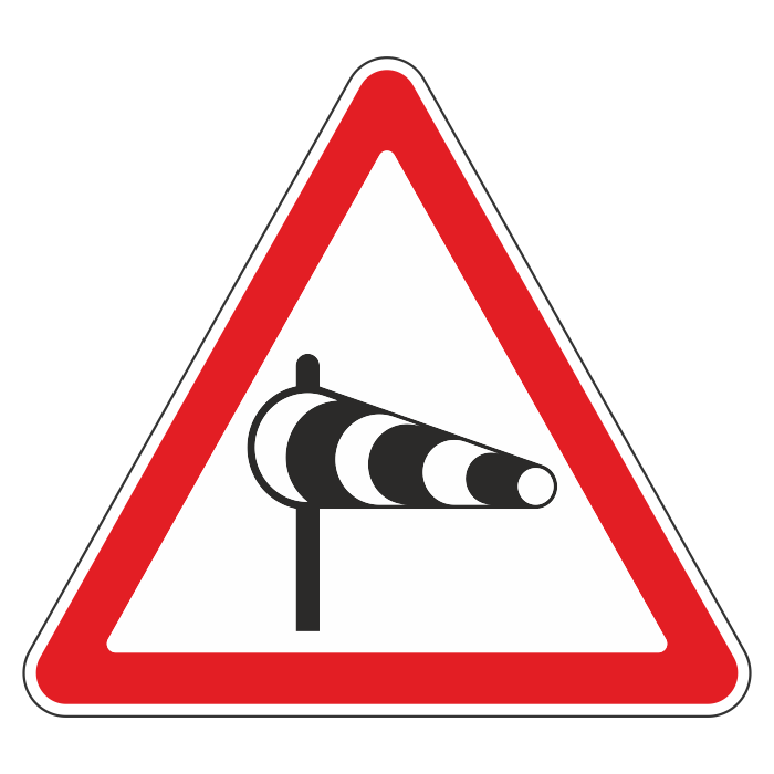 Знак предупреждает о сильных боковых ветрах. Необходимо снизить скорость и держаться как можно ближе к центру занимаемой полосы, чтобы в случае порыва не оказаться на обочине или на встречной полосе