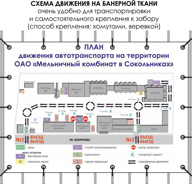 Материал: Схема изготовлена на баннерной ткани. Основой ламинированной (каландрированной) баннерной ткани является сетка, изготовленная из полиэфира, покрытая с двух сторон слоем поливинилхлорида (ПВХ)