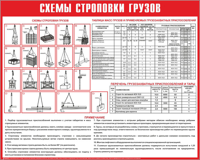 Наши схемы строповок являются наглядным напоминанием и демонстрацией соблюдения техники безопасности на объектах строительства. Все материалы, используемые при изготовлении стендов сертифицированы и экологически безопасны