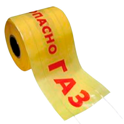 Широкая 200-миллиметровая сигнальная лента для газовых труб. Ярко-желтая лента для усиления эффекта имеет надпись «ОГНЕОПАСНО ГАЗ». Кроме того, изделие оснащено двумя проводниками, что позволяет быстро найти находящуюся под землей трубу из пластика. Материал, из которого выполнена лента, не поддается гниению, что гарантирует длительный срок его службы под землей.