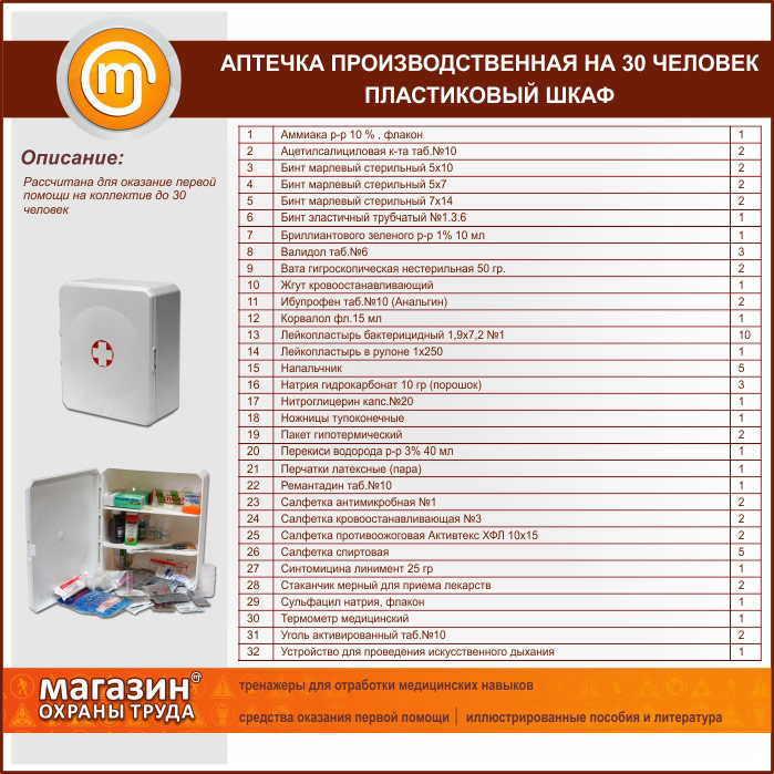 Аптечка ПРОИЗВОДСТВЕННАЯ (до 30 человек) - пластиковый шкаф