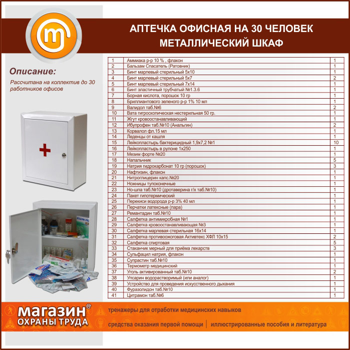 АПТЕЧКА ОФИСНАЯ НА 30 ЧЕЛОВЕК – МЕТАЛЛИЧЕСКИЙ ШКАФ
