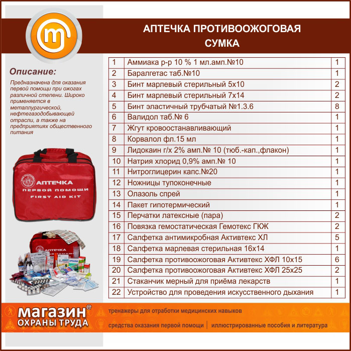 Предназначена для оказания первой помощи при ожогах различной степени. Широко применяется в металлургической, нефтегазодобывающей отрасли, а также на предприятиях общественного питания