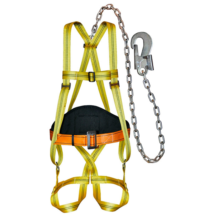 Пояс страховочный, предохранительный с плечевыми и набедренными лямками. Строп «Г» (стальная цепь) длиной 1,4 м. Соответствует ГОСТ Р 12.4.184-95