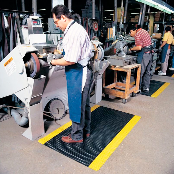 Противоусталостный ковер ромбического рифления в черном цвете с желтыми краями