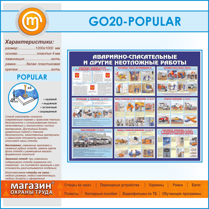 Стенд «Аварийно-спасательные и другие неотложные работы» (GO-20)