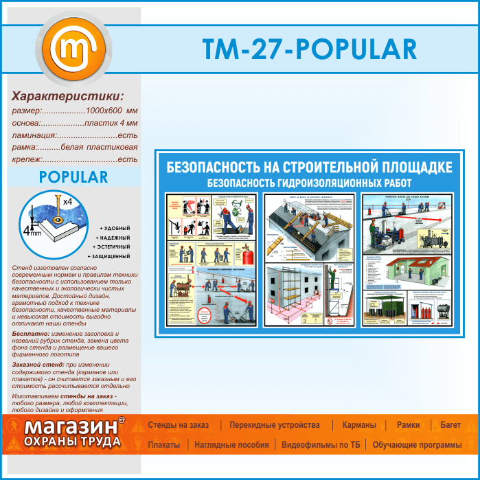 Стенд «Безопасность на строительной площадке. Безопасность гидроизоляционных работ» (TM-27)