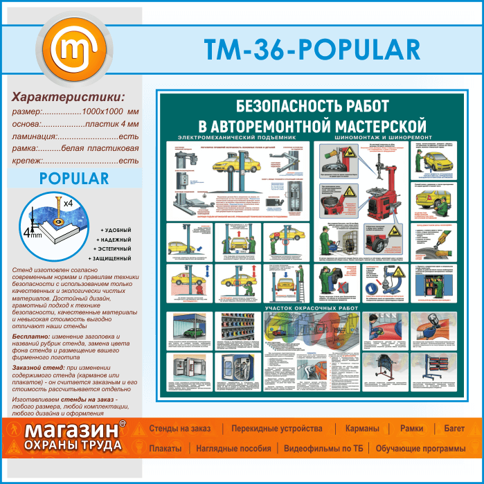Стенд «Безопасность работ в авторемонтной мастерской» (TM-36)