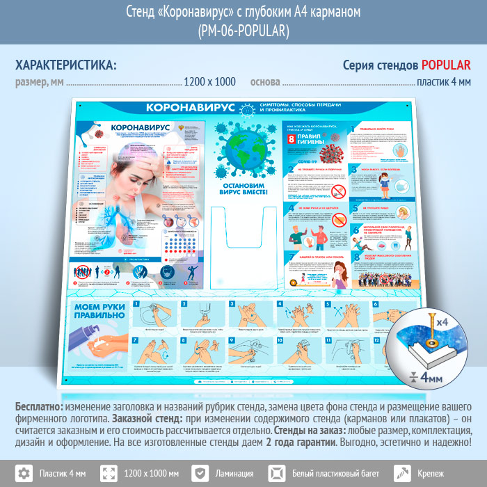 Стенд «Коронавирус» с глубоким А4 карманом (PM-06)