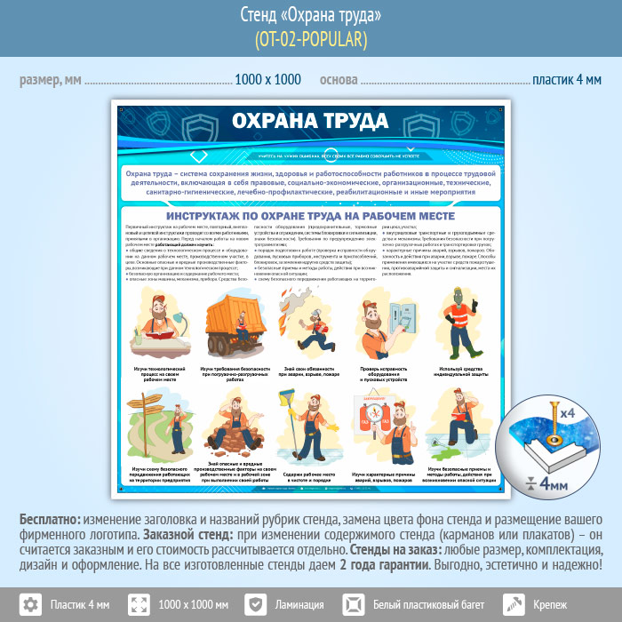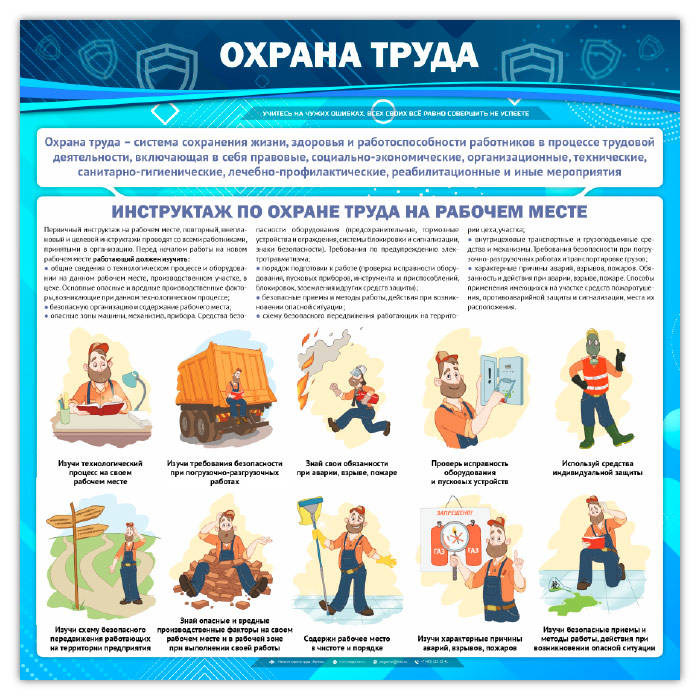Охрана труда – важный элемент любого производственного процесса. Наши стенды по охране труда позволяют качественно изучить требуемые правила безопасности на рабочем месте