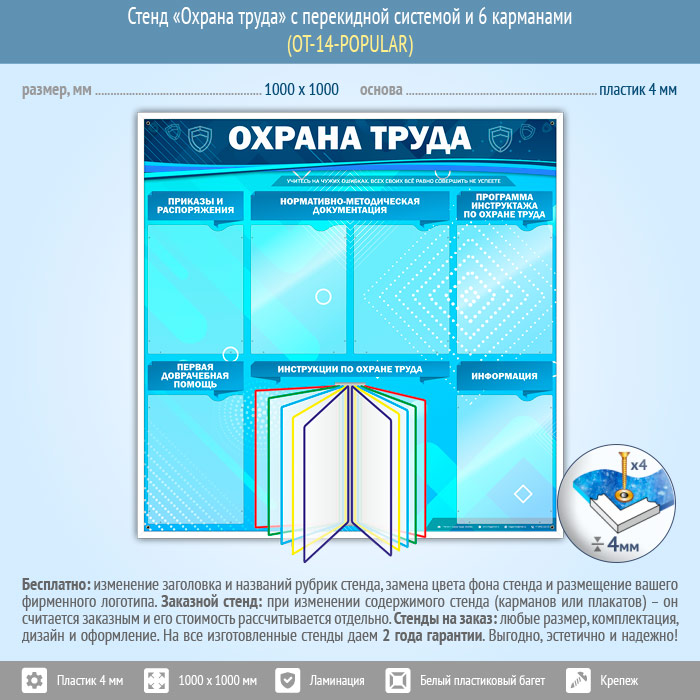 Стенд «Охрана труда» с перекидной системой и 6 карманами (OT-14)