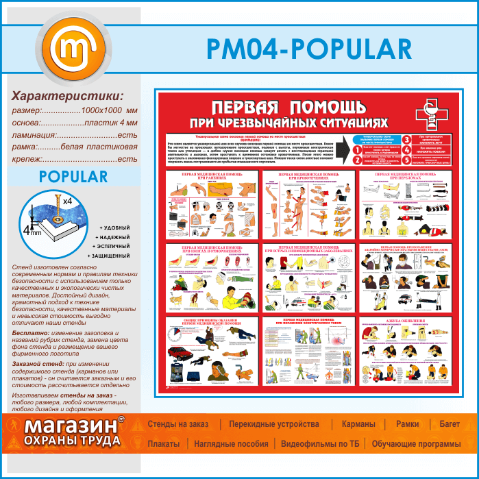 Стенд «Первая помощь при чрезвычайных ситуациях» (PM-04)