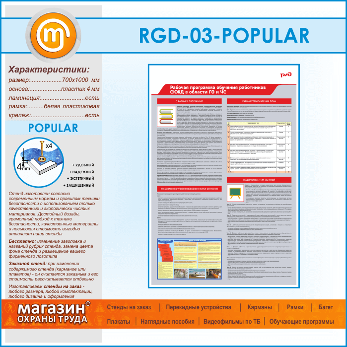 Стенд «Рабочая программа обучения работников СКЖД в области ГО и ЧС» (RGD-03)