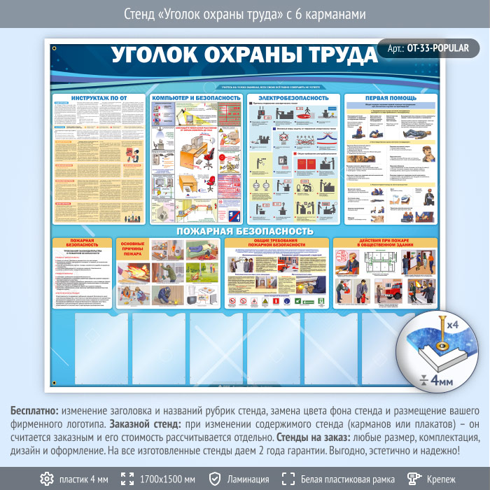 Стенд «Уголок охраны труда» с 6 карманами (OT-33)