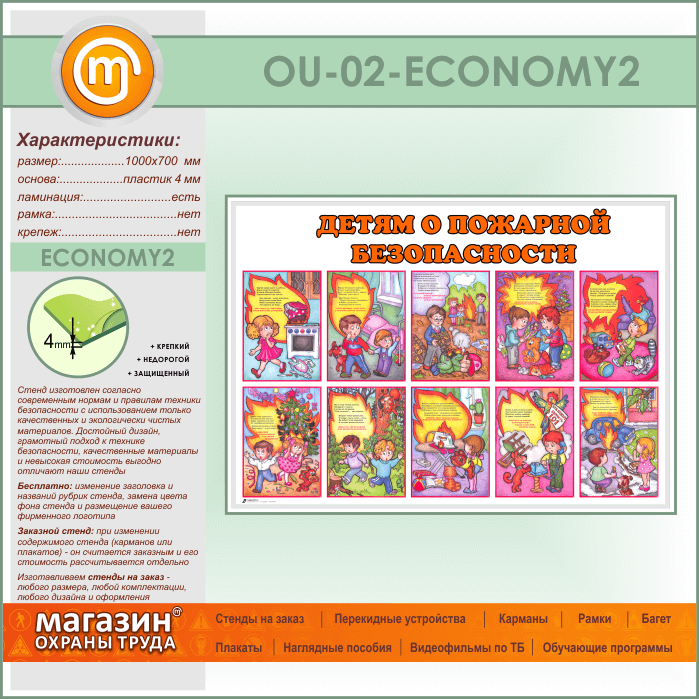 Стенд «Детям о пожарной безопасности» (OU-02-ECONOMY2)