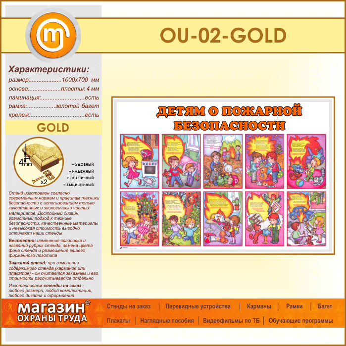 Стенд «Детям о пожарной безопасности» (OU-02-GOLD)