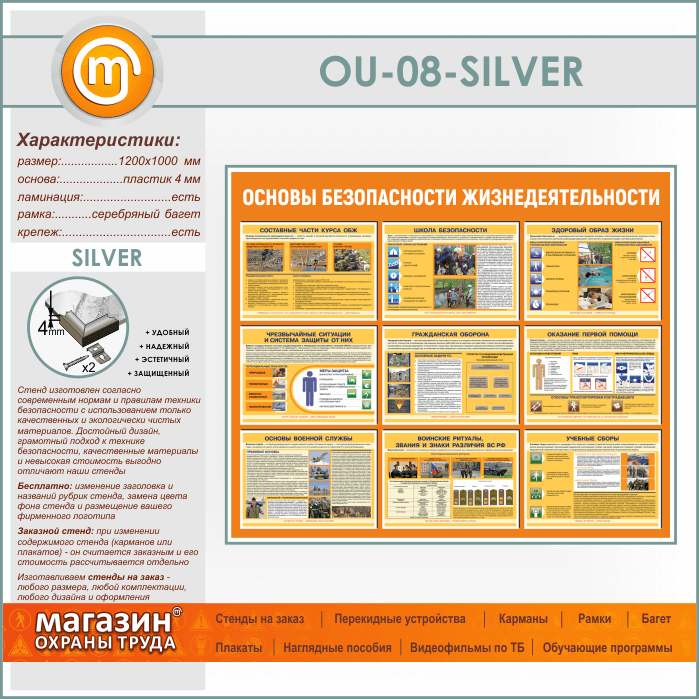 Стенд «Основы безопасности жизнедеятельности» (OU-08-SILVER)