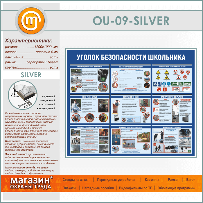 Стенд «Уголок безопасности школьника» (OU-09-SILVER)
